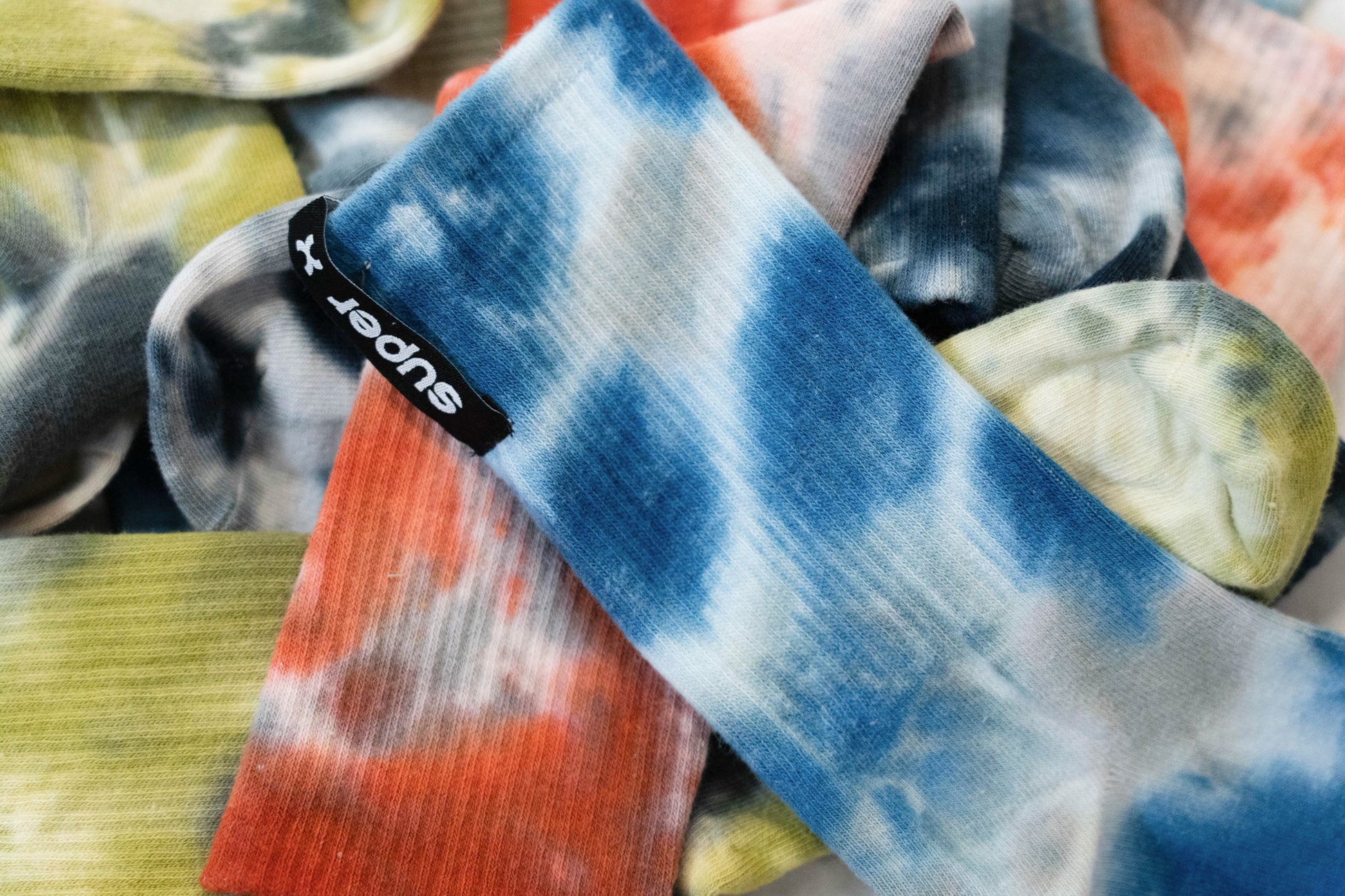 SUPER X new series: tie-dye socks, made of 100% cotton, extra soft and comfortable. With the iconic brand label on the back bone of the socks, perfect for daily or sports wear.