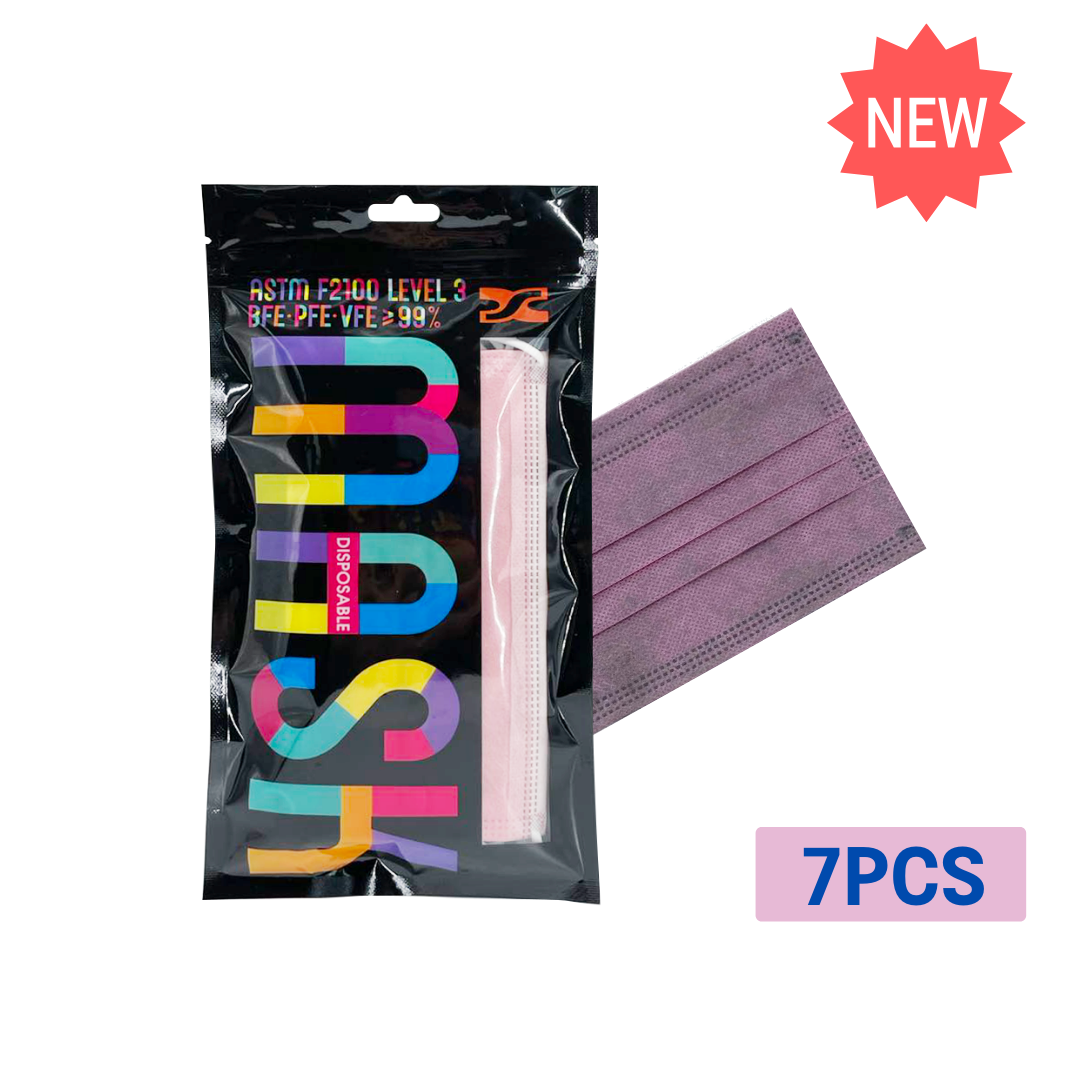 (SX-0011) 【5包】(7片)> 三層防護口罩 (灰粉紅色) 7片