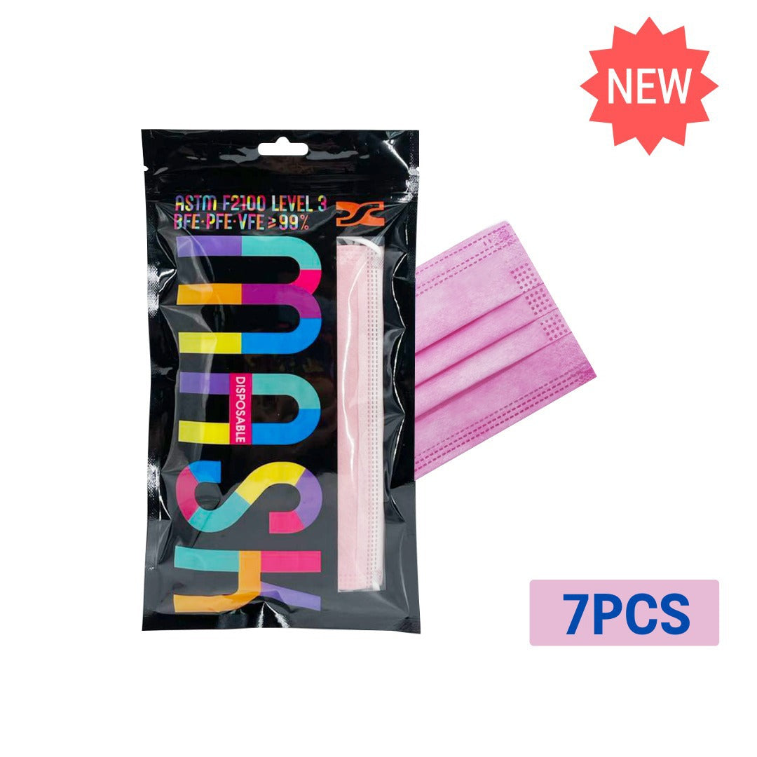 (SX-0008) 【5包】(7片)>三層防護口罩 (玫瑰粉紅色) 7片